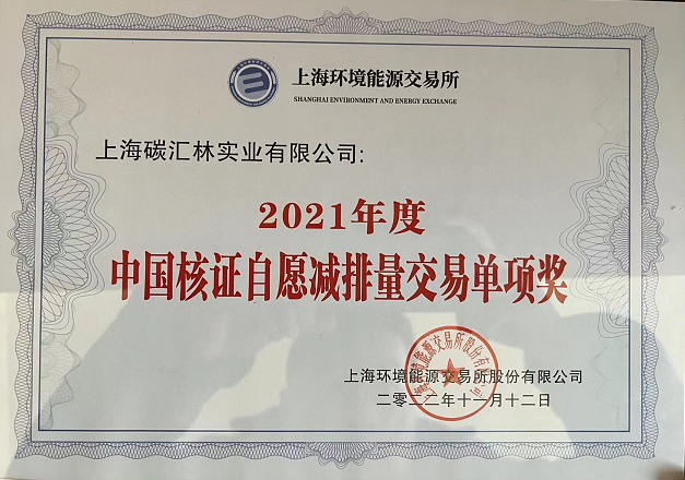 上海碳匯林實業(yè)有限公司獲得上海環(huán)境能源交易所2021年度單項交易獎