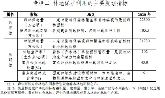 全國林地保護(hù)利用規(guī)劃綱要 (2010-2020年) 林地是國家重要的自然資源和戰(zhàn)略資源, 是森林賴以生存與發(fā)展的根基,在保障木材及林產(chǎn)品供給、維護(hù)國土生態(tài)安全中具有核心地位,在應(yīng)對全球氣候變化中具有特殊地位。國務(wù)院明確要求“要把林地與耕地放在同等重要的位置,高度重視林地保護(hù)” 。為貫徹落實科學(xué)發(fā)展觀,統(tǒng)籌好林地資源的保護(hù)利用,不斷增加森林資源,根據(jù)《中華人民共和國森林法》、《中華人民共和國森林法實施條例》 、 《中共中央國務(wù)院關(guān)于加大統(tǒng)籌城鄉(xiāng)發(fā)展力度進(jìn)一步夯實農(nóng)業(yè)農(nóng)村發(fā)展基礎(chǔ)的若干意見》(中發(fā)[2010]1號)和《全國土地利用總體規(guī)劃綱要(2006-2020年)》等法律法規(guī)和國家有關(guān)林地保護(hù)管理的方針、政策,制定《全國林地保護(hù)利用規(guī)劃綱要(2010-2020年)》以下簡稱《綱要》)。 本《綱要》主要闡明規(guī)劃期內(nèi)國家林地保護(hù)利用戰(zhàn)略,明確全國林地保護(hù)利用的指導(dǎo)思想、目標(biāo)任務(wù)和政策措施,引導(dǎo)全社會嚴(yán)格保護(hù)林地、節(jié)約集約利用林地、優(yōu)化林地資源配置,提高林地保護(hù)利用效率,實現(xiàn) 2020 年森林覆蓋率奮斗目標(biāo),實現(xiàn)我國在聯(lián)合國氣候變化峰會上提出的爭取到 2020 年森林面積和蓄積分別比2005年增加4000萬公頃和13億立方米的目標(biāo)。《綱要》是指導(dǎo)全國林地保護(hù)利用的綱領(lǐng)性文件。 本《綱要》的規(guī)劃范圍未包括香港特別行政區(qū)、澳門特別行政區(qū)和臺灣省。
